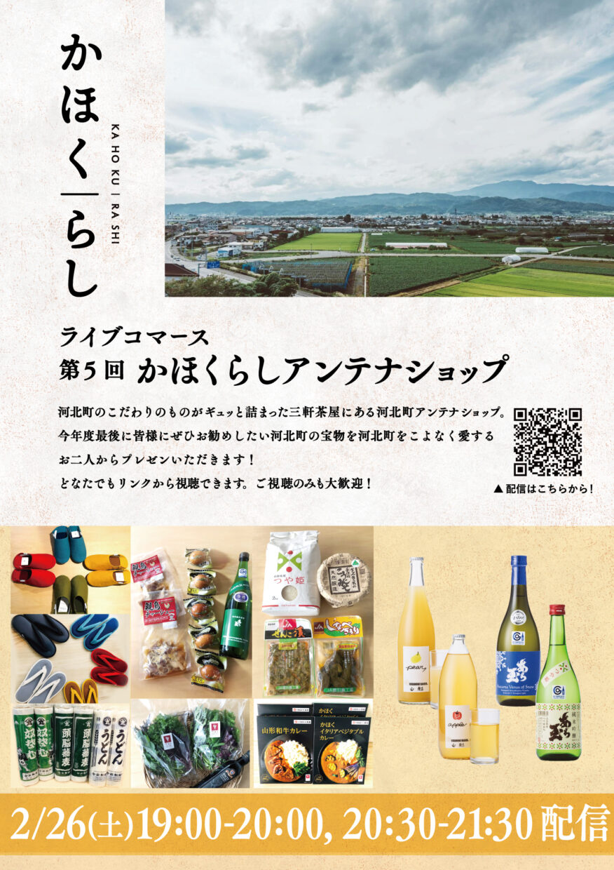 今年度最後のライブコマースは、河北町の魅力がギュッと詰まった、河北町アンテナショップかほくらしからご案内します!